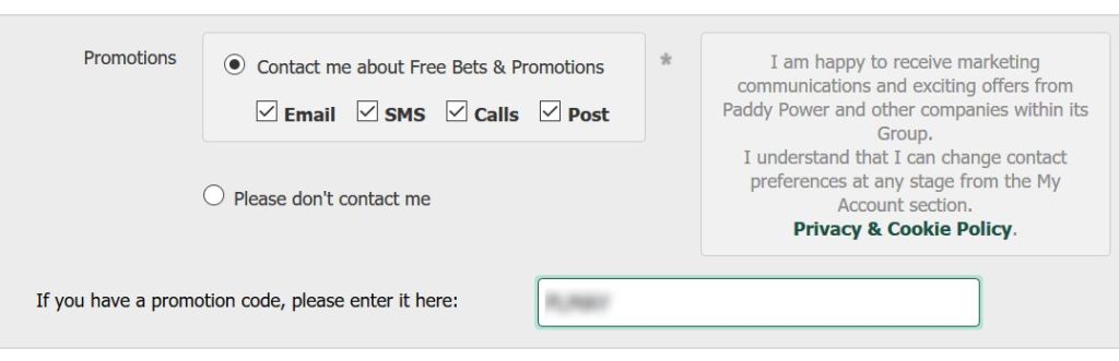 - Your Paddy Power promo code (required to qualify for the free bet option)