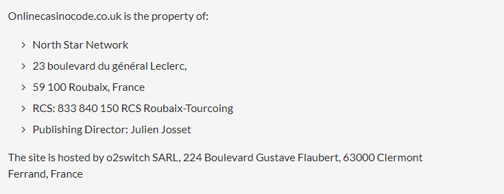 Onlinecasinocode.co.uk is a gambling guide. It is published by North Star Network SAS, which provides users with services and content that help them better understand or choose a game, operator or gaming operator offer.
